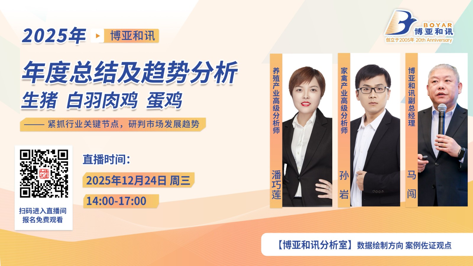 【BOYAR直播】2025年度總結(jié)及趨勢(shì)分析 生豬、白羽肉雞、蛋雞,12月24日,周三下午2點(diǎn)開(kāi)播!
