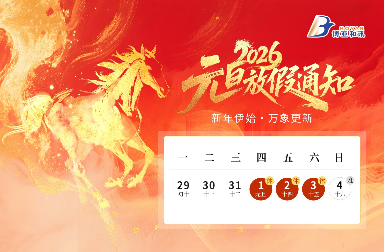 博亞和訊2026年元旦放假通知