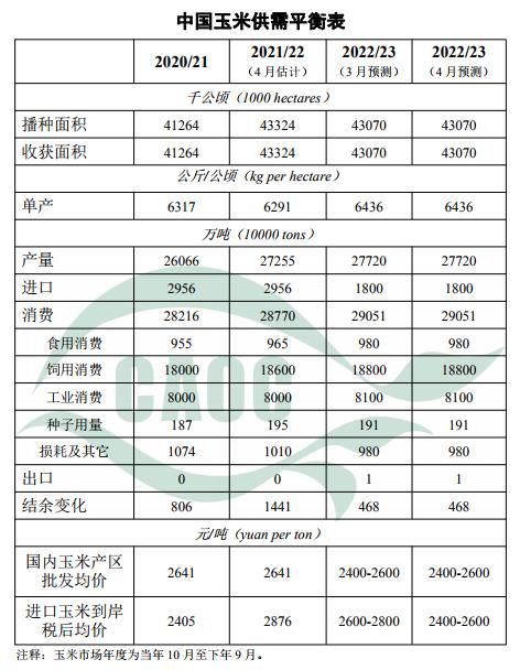 中國農業(yè)農村部公布農產品供需形勢分析報告:本月預測,2022/23年度中國玉米生產、消費、貿易和價格預測數(shù)與上月保持一致。春耕在即,玉米存儲成本增加,農戶出售余糧意愿增強,主產區(qū)各類糧食企業(yè)收購進度較上年同期快約6%。需求方面,蛋禽、肉禽養(yǎng)殖利潤有所回升,但生豬養(yǎng)殖仍處于虧損狀態(tài),整體飼用消費需求恢復不及預期,而玉米深加工市場維持低庫存低生產狀態(tài),部分工廠因虧損開啟檢修或停機后,下游需求仍舊清淡,多以消化庫存為主,疊加進口增加、稻米拍賣入市等因素影響,預計短期內國內玉米價格弱勢運行。隨著消費持續(xù)恢復,種植成本提供下方支撐,后期玉米價格將止跌企穩(wěn)。