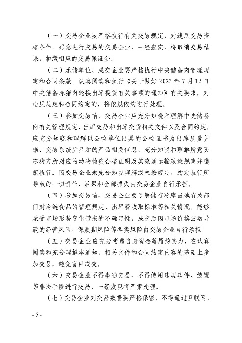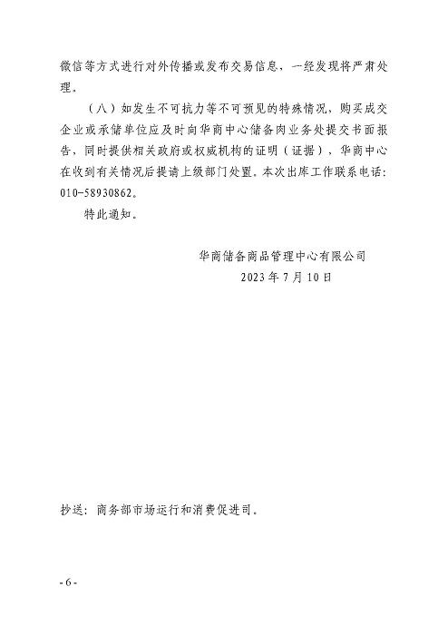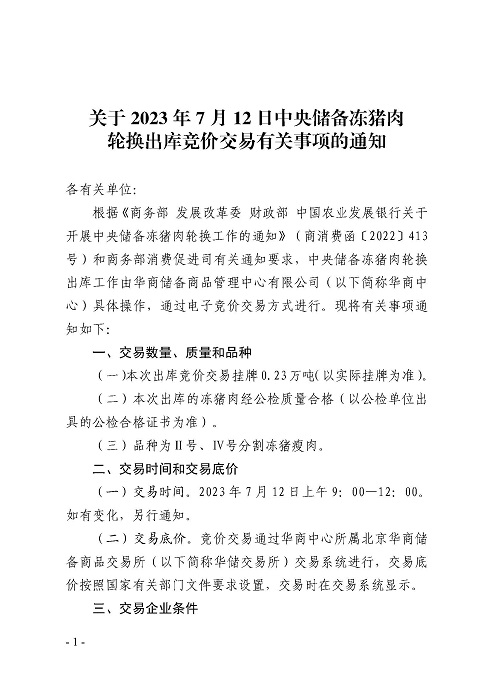 關(guān)于2023年7月12日中央儲備凍豬肉輪換出庫競價交易有關(guān)事項的通知