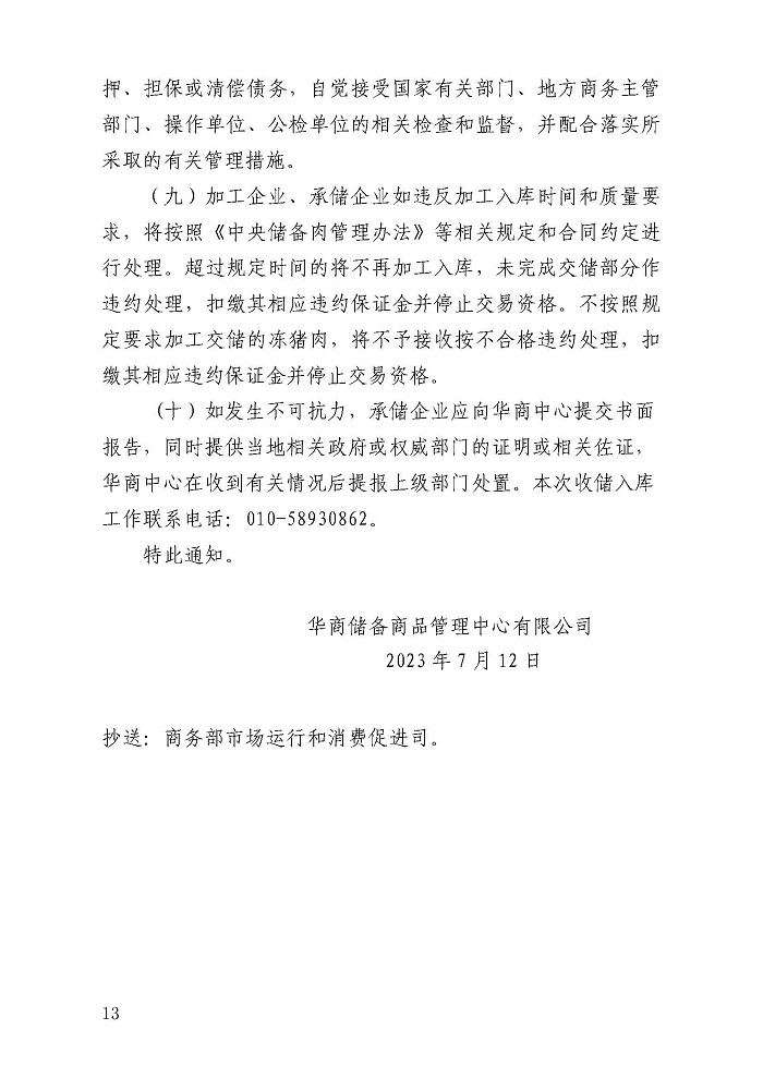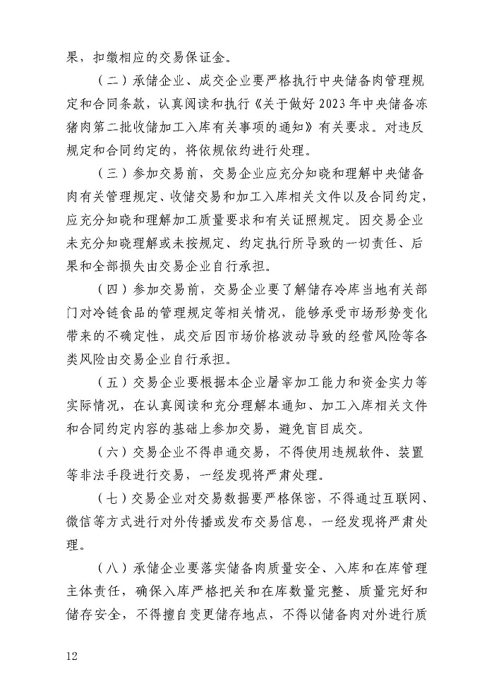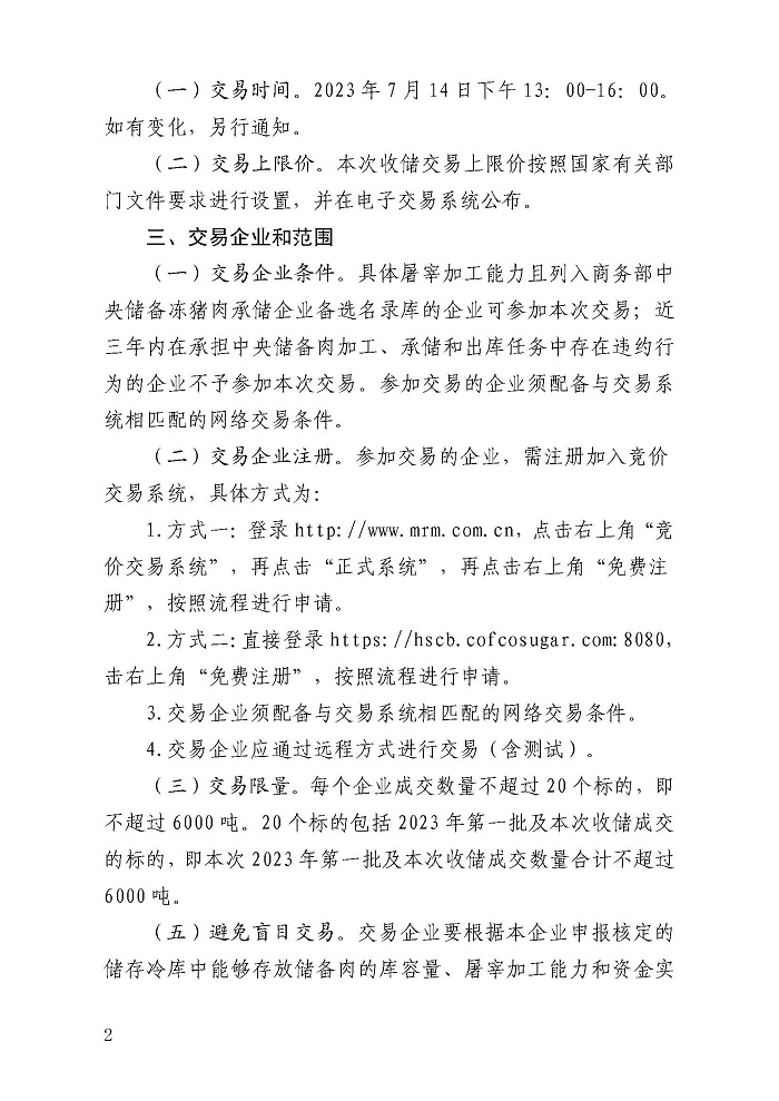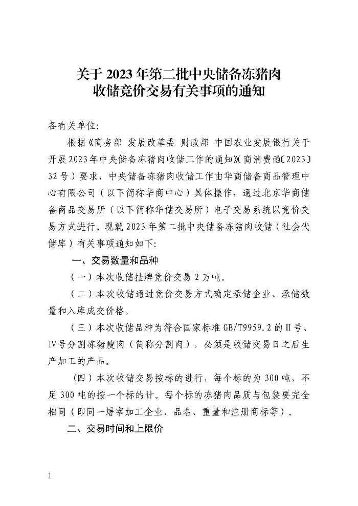 關(guān)于2023年第二批中央儲備凍豬肉收儲競價交易有關(guān)事項(xiàng)的通知