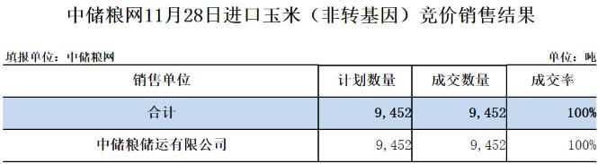 2023年11月28日中儲糧網(wǎng)進(jìn)口玉米(非轉(zhuǎn)基因)競價(jià)銷售結(jié)果
