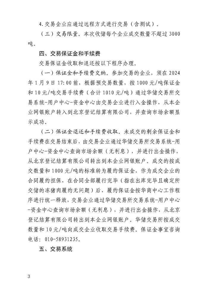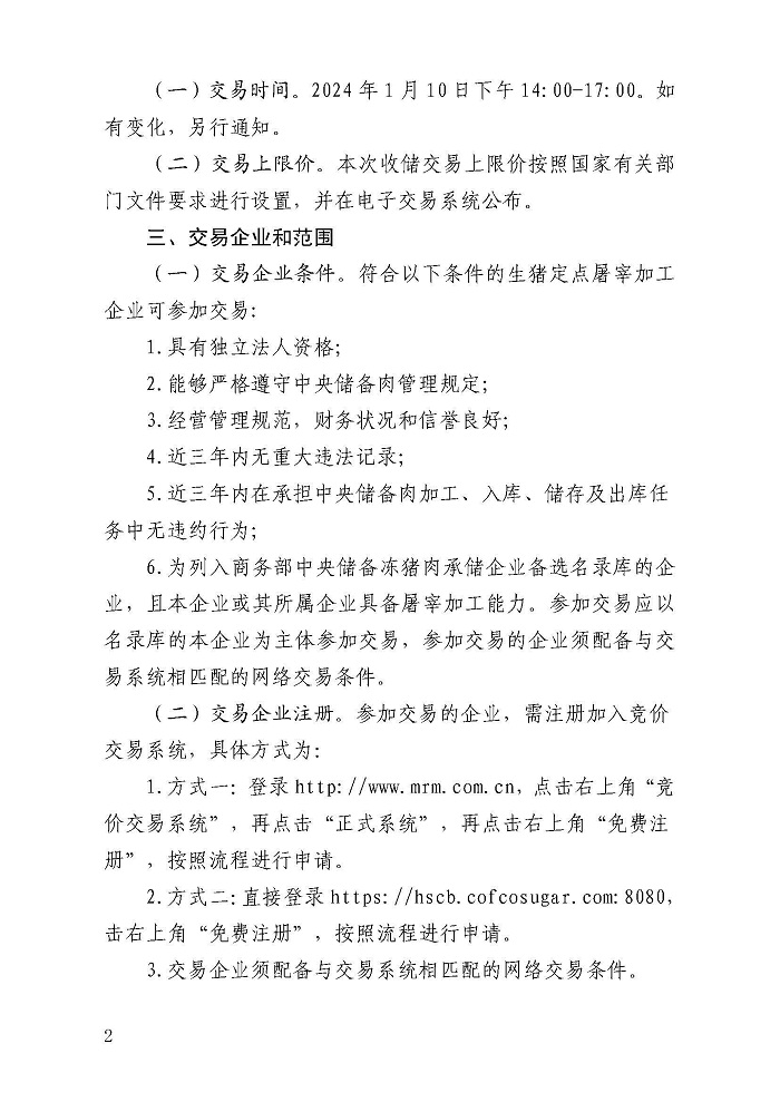 華儲(chǔ)網(wǎng)1月8日發(fā)布關(guān)于2023年1月10日中央儲(chǔ)備凍豬肉輪換收儲(chǔ)交易有關(guān)事項(xiàng)的通知。本次中央儲(chǔ)備凍豬肉輪換收儲(chǔ)競(jìng)價(jià)交易3萬(wàn)噸,交易時(shí)間為2023年1月10日下14:30時(shí)17:30。