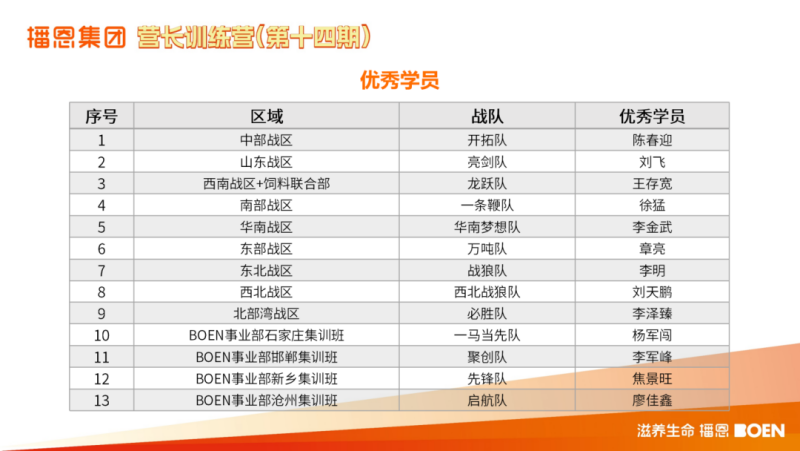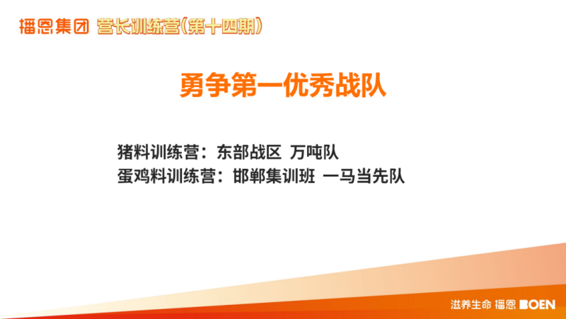 播恩集團(tuán)營(yíng)長(zhǎng)訓(xùn)練營(yíng)(第十四期)的圓滿開(kāi)展,不僅為營(yíng)長(zhǎng)們提供了一個(gè)學(xué)習(xí)與交流的高端平臺(tái),更為播恩集團(tuán)注入了新的活力與智慧。展望未來(lái),這些經(jīng)過(guò)精心培訓(xùn)的營(yíng)銷精英們將攜手并進(jìn),共同開(kāi)創(chuàng)播恩集團(tuán)價(jià)值營(yíng)銷的新篇章,為播恩、也為行業(yè)的繁榮與發(fā)展貢獻(xiàn)新的力量。
