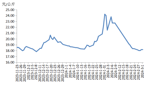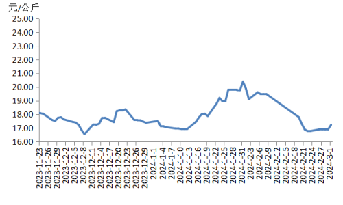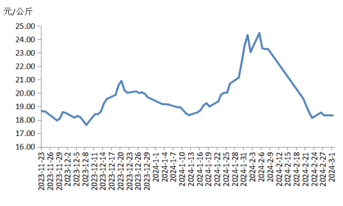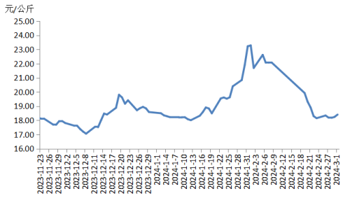 本周華東地區(qū)豬肉價格環(huán)比下跌。周初,規(guī)模養(yǎng)殖場和散養(yǎng)戶出欄量恢復(fù)正常,生豬及豬肉供應(yīng)相對充足;元宵節(jié)過后,下游豬肉訂單量縮減,高價豬肉銷售速度緩慢,屠宰企業(yè)降價銷售。隨后,規(guī)模養(yǎng)殖場出欄量減少,生豬及豬肉供應(yīng)偏緊,同時,終端需求仍疲軟,市場上供需僵持,白條豬肉價格穩(wěn)定運行。