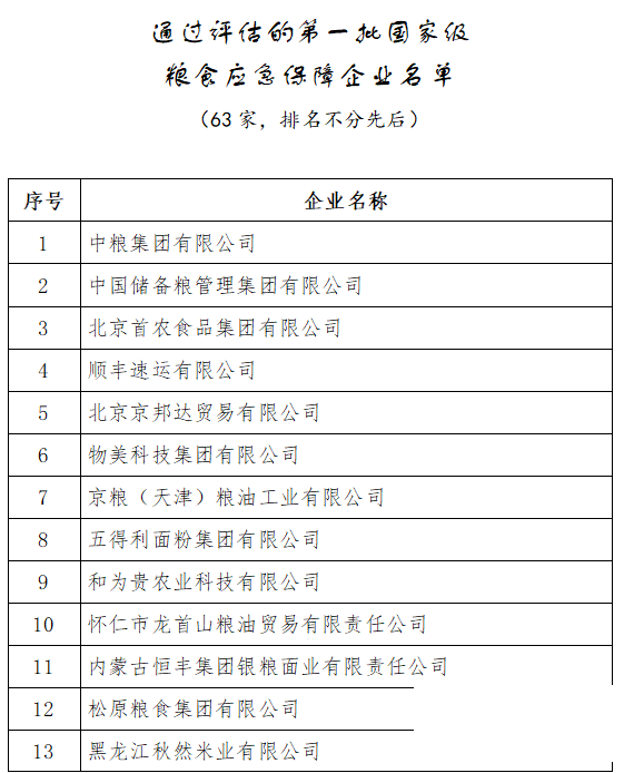 63家國家級糧食應(yīng)急保障企業(yè)正式公布!