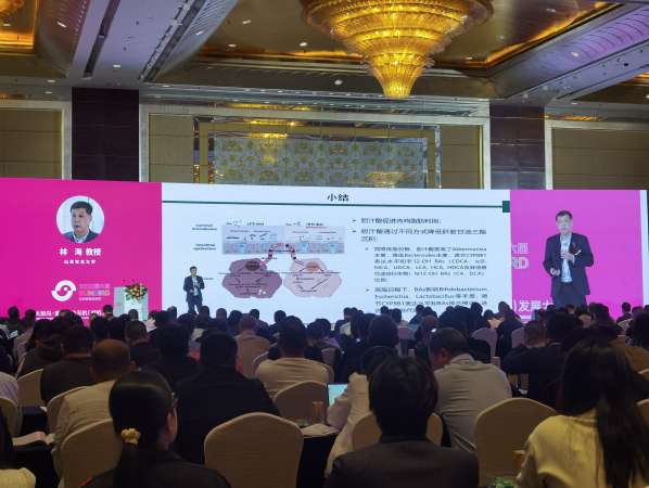 龍昌動(dòng)保作為贊助企業(yè)之一應(yīng)邀參加本屆會(huì)議,并特邀山東農(nóng)業(yè)大學(xué)林海教授圍繞《膽汁酸調(diào)控腸道菌群和肝臟膽汁酸譜緩解肉雞肝臟脂肪沉積》做專題報(bào)告。