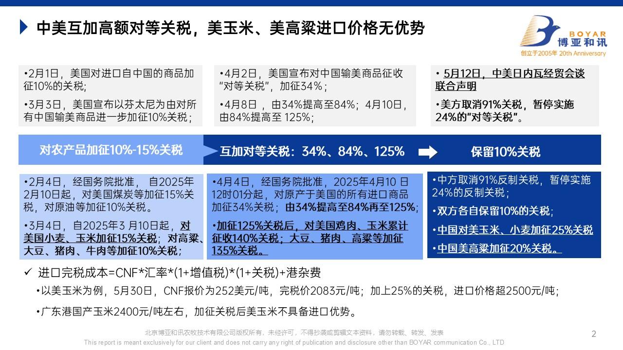 【BOYAR觀察】全球玉米產(chǎn)量創(chuàng)新高!中美關(guān)稅下調(diào)等利空發(fā)酵,國內(nèi)玉米價格漲幅放緩