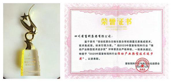 四川省畜科集團(tuán)憑借突出的技術(shù)集成能力、顯著的標(biāo)準(zhǔn)引領(lǐng)作用,首創(chuàng)的低蛋白日糧與復(fù)合有機(jī)微量元素新技術(shù)新產(chǎn)品(該技術(shù)為飼料行業(yè)綠色轉(zhuǎn)型與畜牧業(yè)高質(zhì)量發(fā)展提供關(guān)鍵支撐),榮獲2025中國畜牧飼料行業(yè)“推動產(chǎn)業(yè)轉(zhuǎn)型十大技術(shù)進(jìn)步獎”,這是對畜科集團(tuán)科技研發(fā)與產(chǎn)業(yè)化落地成就的高度社會認(rèn)可,由四川省畜科院營養(yǎng)健康研究所湯文杰所長代表畜科集團(tuán)上臺授頒領(lǐng)獎。