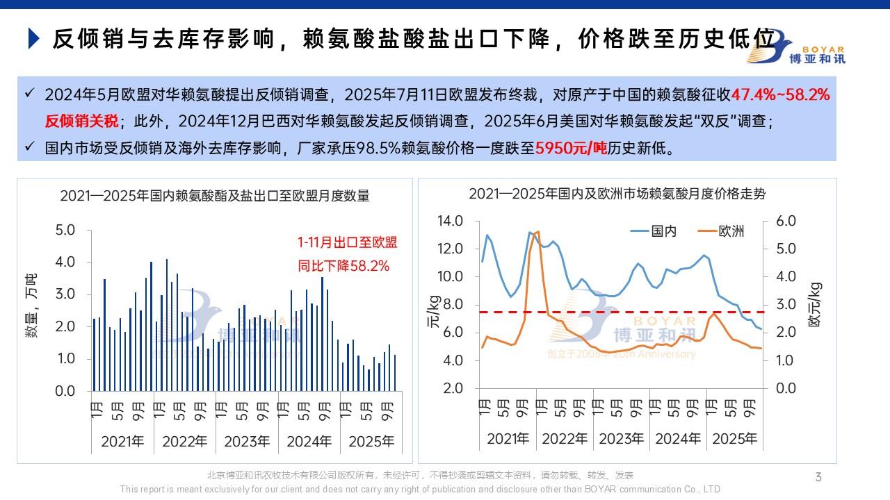 【BOYAR觀察】歐盟賴氨酸反傾銷施壓出口,廠家鹽酸鹽報價持續(xù)下行,何時迎來上漲機會?