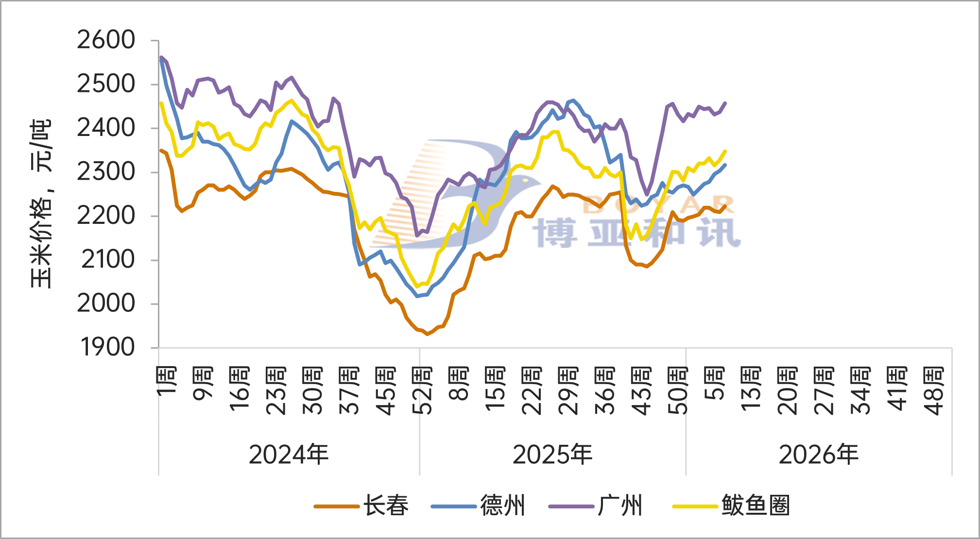 2024-2026年國內(nèi)主要地區(qū)玉米價格走勢-第9周