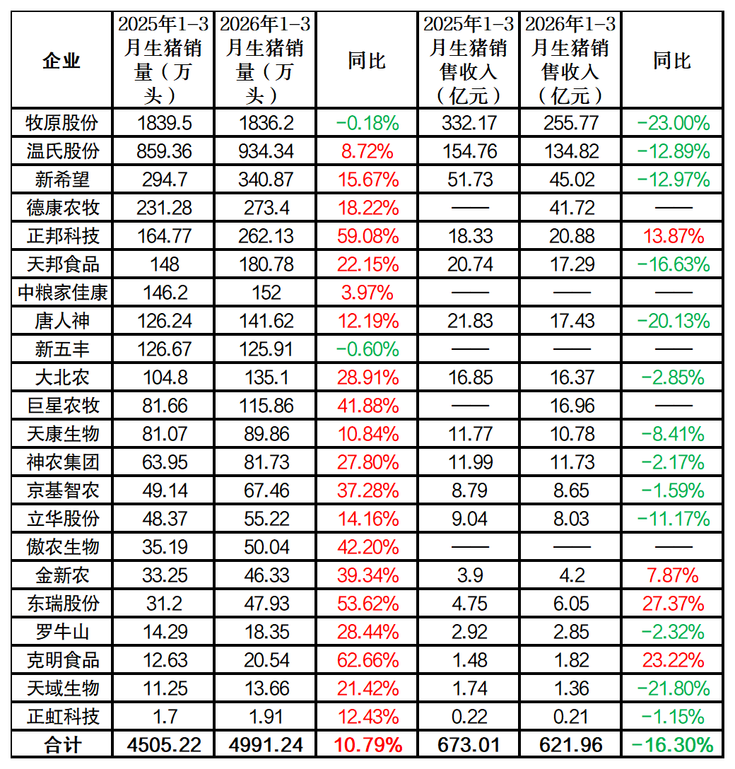 【BOYAR觀察】22家上市豬企一季度生豬出欄量同比增長,銷售收入同比下滑