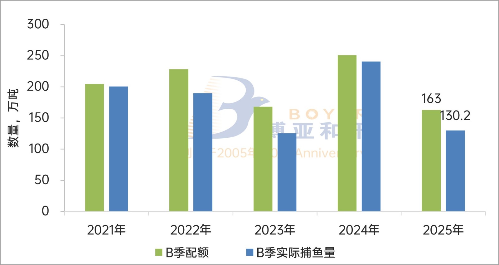 2021-2025年秘魯中北部B季捕魚配額及捕撈情況