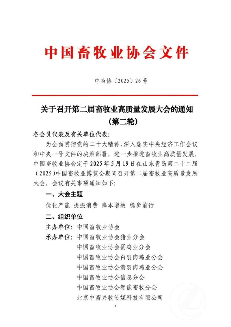 關(guān)于召開(kāi)第二屆畜牧業(yè)高質(zhì)量發(fā)展大會(huì)的通知(第二輪)