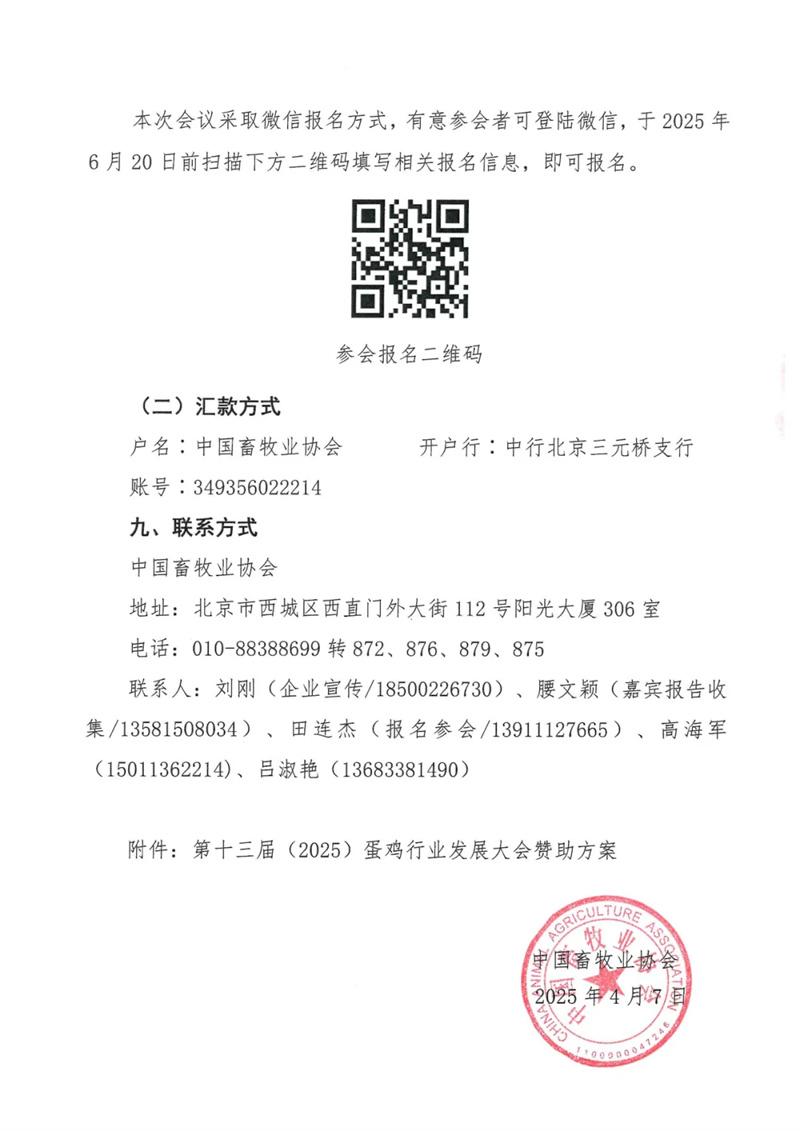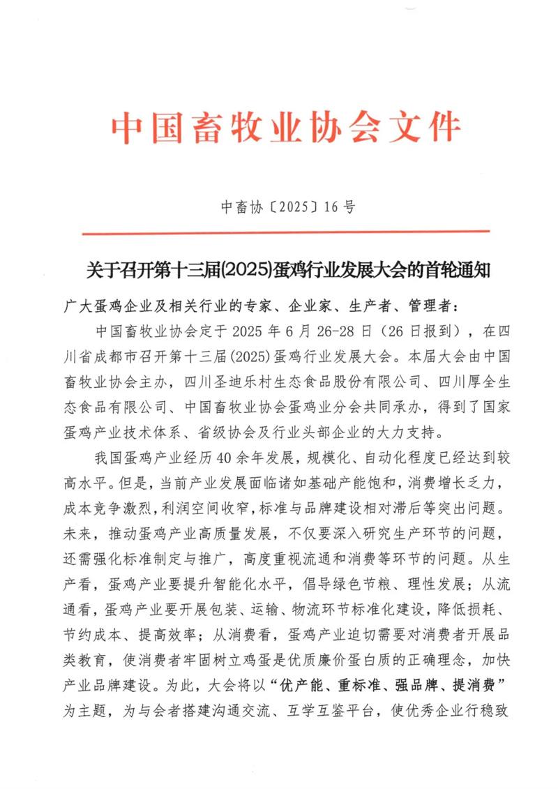 關(guān)于召開第十三屆(2025)蛋雞行業(yè)發(fā)展大會的首輪通知