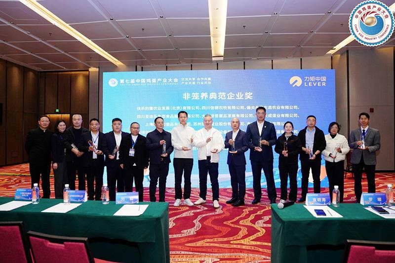 為推動更多企業(yè)向非籠養(yǎng)方向轉(zhuǎn)型,共同構(gòu)建“技術(shù)共享、資源協(xié)同、市場共贏”的蛋雞非籠養(yǎng)生態(tài)圈,本次論壇上評選出快樂的蛋農(nóng)業(yè)發(fā)展(北京)有限公司、四川信德農(nóng)牧有限公司、偏關(guān)永奧生態(tài)農(nóng)業(yè)有限公司為“100%非籠養(yǎng)典范企業(yè)”,四川圣迪樂、大連綠雪蛋品等12家養(yǎng)殖企業(yè)及設(shè)備廠商為“非籠養(yǎng)典范企業(yè)”。